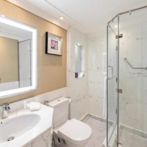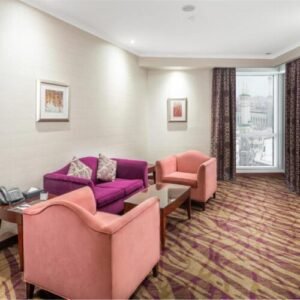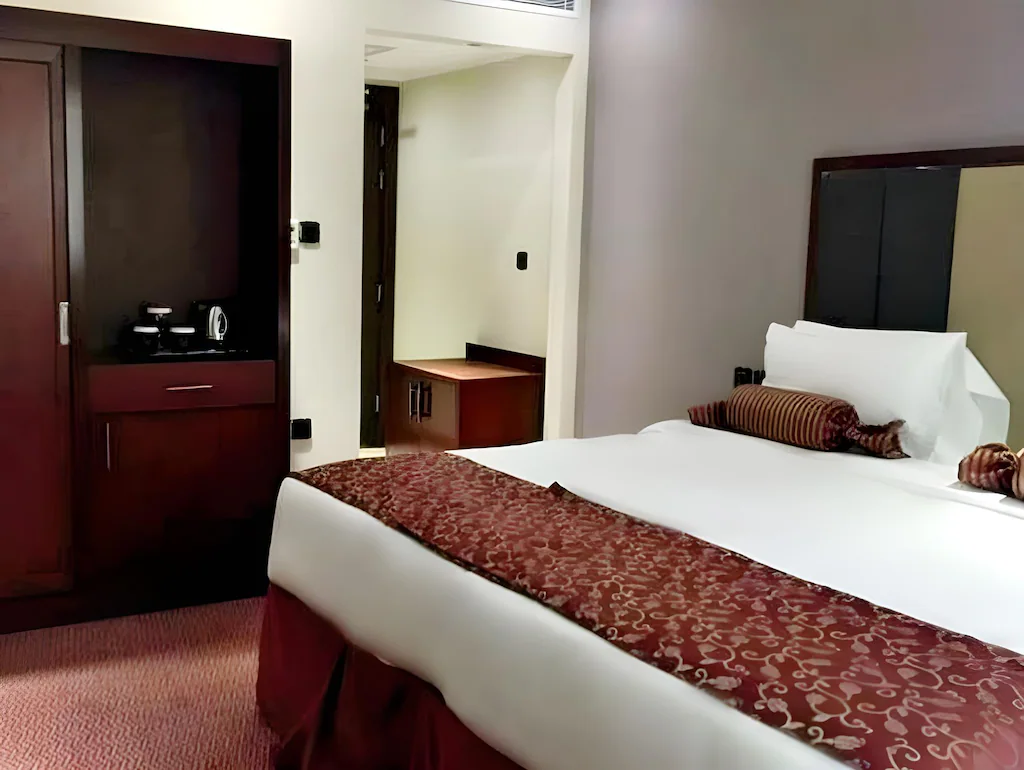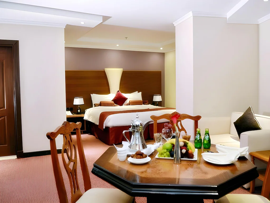 The hotel offers over 800 spacious rooms and suites, all equipped with air-conditioning, flat-screen TVs, Wi-Fi, work desks, minibars, and en-suite bathrooms. Designed with guest comfort in mind, each room reflects a blend of contemporary style and traditional Arabian hospitality.